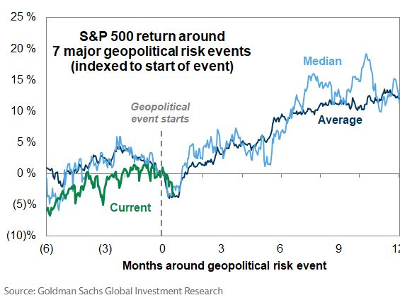 Below, you can see the first chart which shows that this kind of event is not new for equities: typically, you see an initial dip right when the shock hits, but then returns tend to recover quite steadily over the following months.