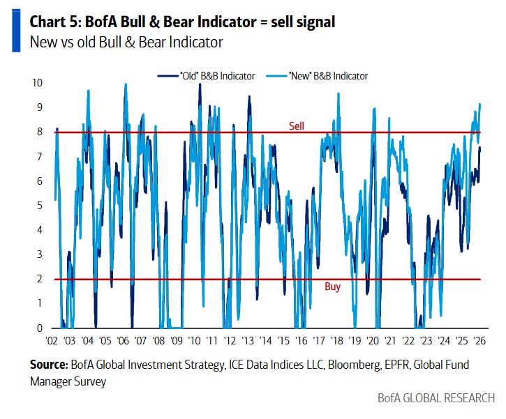 The Bull & Bear Indicator has moved decisively into sell territory, highlighting an increasingly crowded long positioning. Historically, such sentiment extremes have coincided with lower forward returns and rising volatility, suggesting that upside from here may be more limited unless fundamentals re-accelerate. Importantly, this reflects positioning and optimism rather than stress, leaving markets more exposed to possible disappointments. π§ β οΈ